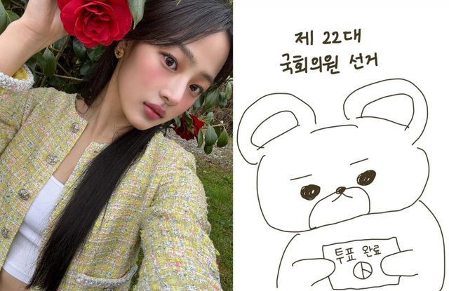 올해 처음으로 투표권을 행사하게 된 뉴진스 멤버 민지도 참여했다. 그는 그룹 공식 인스타그램 계정에 "제22대 국회의원 선거 투표 완료"라고 적힌 그림을 게재하며 투표를 인증했다.