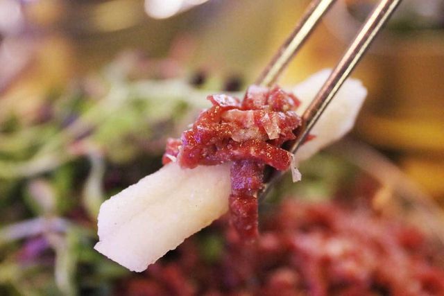 이 밖에도 한우사골을 넣어 만든 '횡성한우우거지탕'과 우둔살을 이용한 '횡성 한우 육회'는 고소한 참기름과 잣 배를 채썰어 양념해 더욱 담백하고 고소한 맛을 느낄 수 있다.