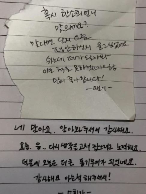 10일 한소희는 한 팬이 쓴 걸로 보이는 쪽지 내용을 공개했다.
