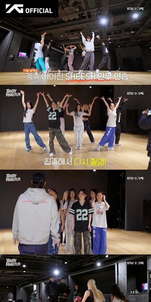 YG엔터테인먼트는 지난 10일 공식 블로그에 'BABYMONSTER - 'SHEESH' DANCE PRACTICE BEHIND'를 게재했다. 신곡 'SHEESH' 활동에 앞서 완벽한 퍼포먼스를 위해 구슬땀을 흘리는 멤버들의 모습이 그려진 영상이다.