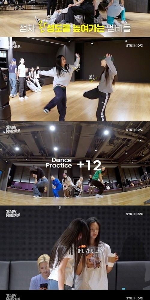 밝은 인사와 함께 첫 연습에 돌입한 베이비몬스터는 차근차근 디테일부터 잡아갔다. 라인과 각이 중요한 안무인 만큼 멤버들은 반복을 거듭했고, 놀라운 집중력으로 곡에 어울리는 섬세한 표현력까지 더하며 완성도를 높여갔다.