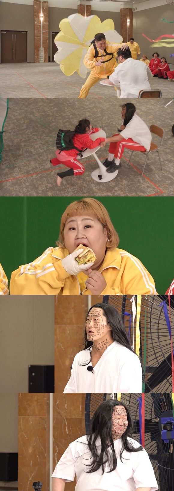 한편, 천만 관객을 돌파한 영화 '파묘'를 패러디한 '파먹'이 공개돼 모두를 충격에 빠뜨린다. 글자가 빼곡히 쓰인 '파묘' 속 김고은으로 변신한 김동현과 나선욱의 충격적인 비주얼에 모두가 겁에 질리는 기괴한 분위기가 이어졌다. 이날 먹찌빠 녹화 현장에 출몰해 덩치들의 처절한 비명을 이끌어낸 '험한 것', '파먹'의 정체는 무엇일지, 방송을 통해 확인할 수 있다.