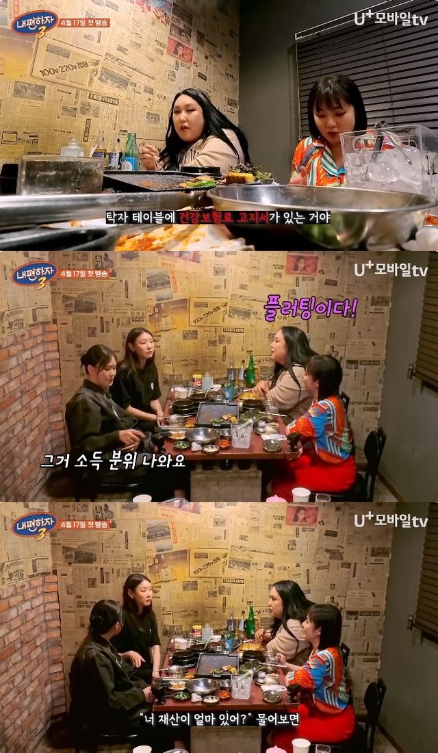 박나래와 풍자가 "재산을 보여달라"고 재촉하자 한혜진은 "너네 나랑 결혼할 거 아니지 않냐"고 받아쳐 웃음을 자아냈다.