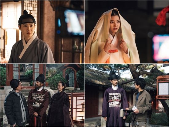 먼저 보쌈으로 인해 일생일대의 위기를 겪게 되는 세자 이건 역의 수호는 진중한 표정으로 열연을 펼치는 모습이 포착돼 시선을 사로잡는다. 수호는 데뷔 이후 첫 사극 주연을 맡아 매 촬영에 열정을 쏟아부으며 현장의 중심을 잡은 채 극의 완성도를 높이고 있다.
