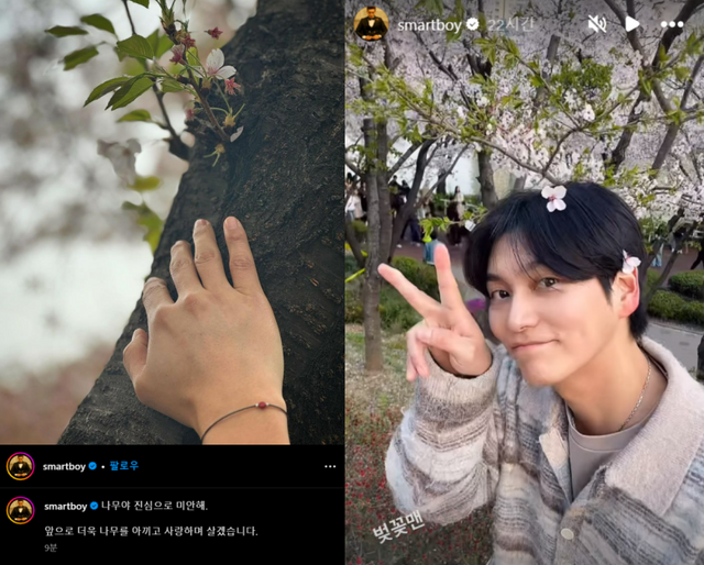 최성준은 11일 자신의 SNS에 “나무야 진심으로 미안해. 앞으로 더욱 나무를 아끼고 사랑하며 살겠습니다”라는 글과 함께 나무에 손을 얹은 사진을 게재했다.