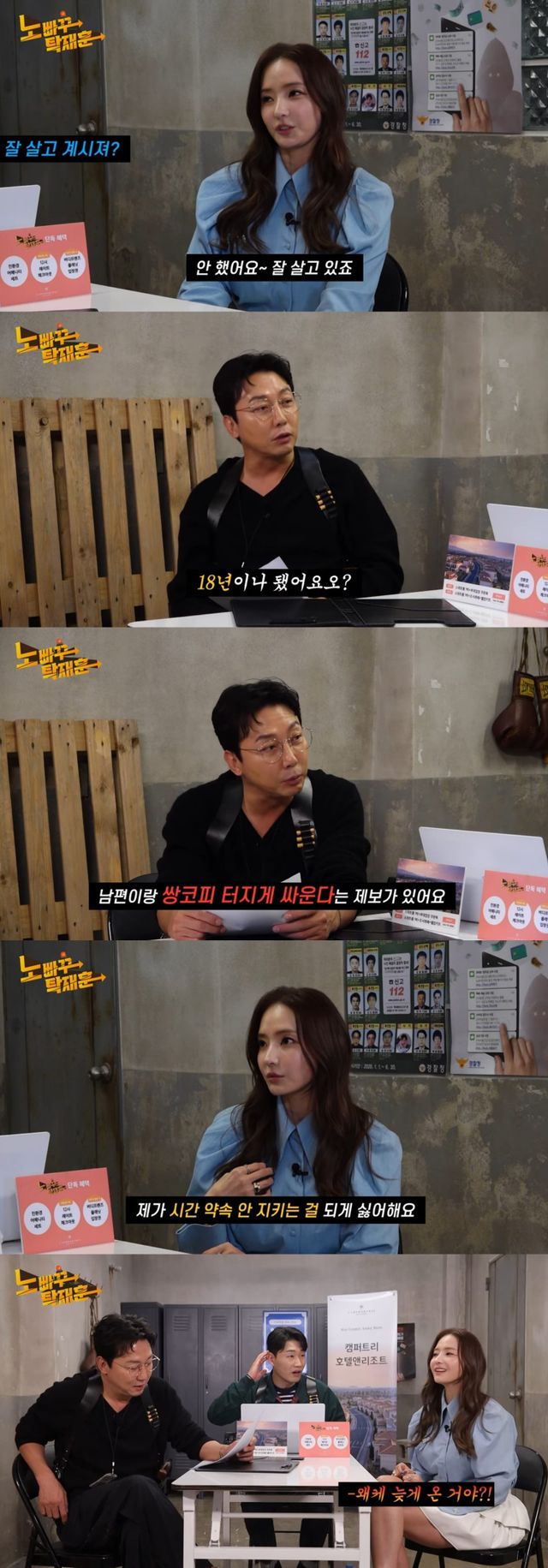 그런가 하면, 탁재훈은 "남편이랑 쌍코피 터지게 싸운다는 제보가 있다"고 말했다.