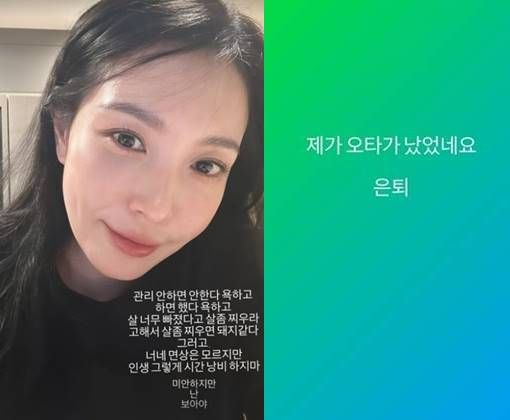 지난달에도 "관리 안하면 안한다 욕하고 하면 했다 욕하고. 살 너무 빠졌다고 살 좀 찌우라고 해서 살 좀 찌우면 돼지같다 그러고"라며 "너네 면상은 모르지만 인생 그렇게 시간 낭비하지마. 미안하지만 난 보아야"라며 악플 고통을 호소했다.