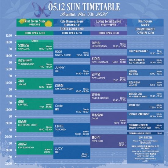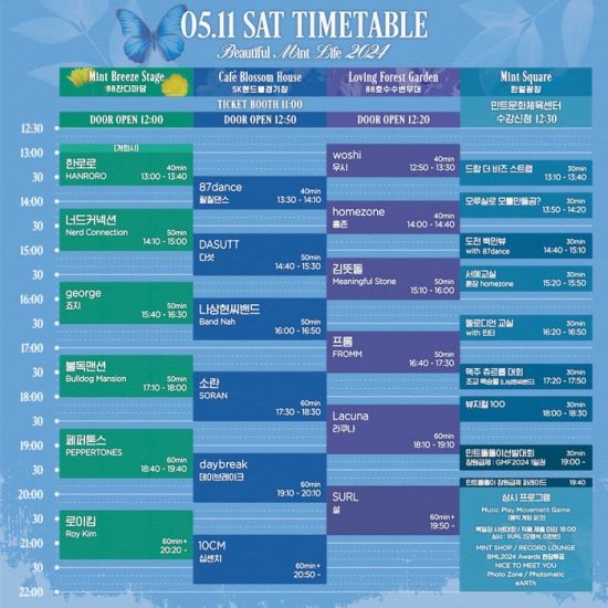 행사는 Mint Breeze Stage, Café Blossom House, Loving Forest Garden 등 총 3개의 스테이지에서 진행된다.