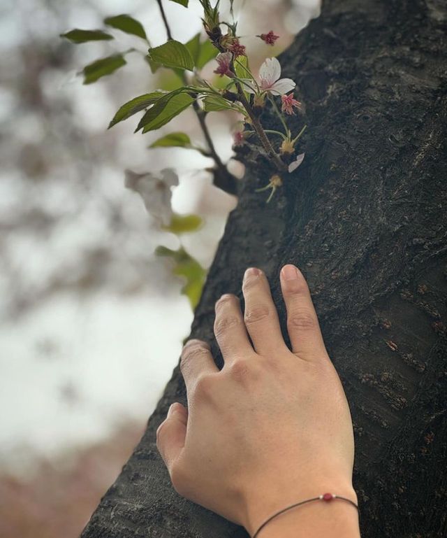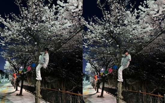 함께 공개한 사진에는 나무를 어루만지고 있는 인증샷이 담겼다.
