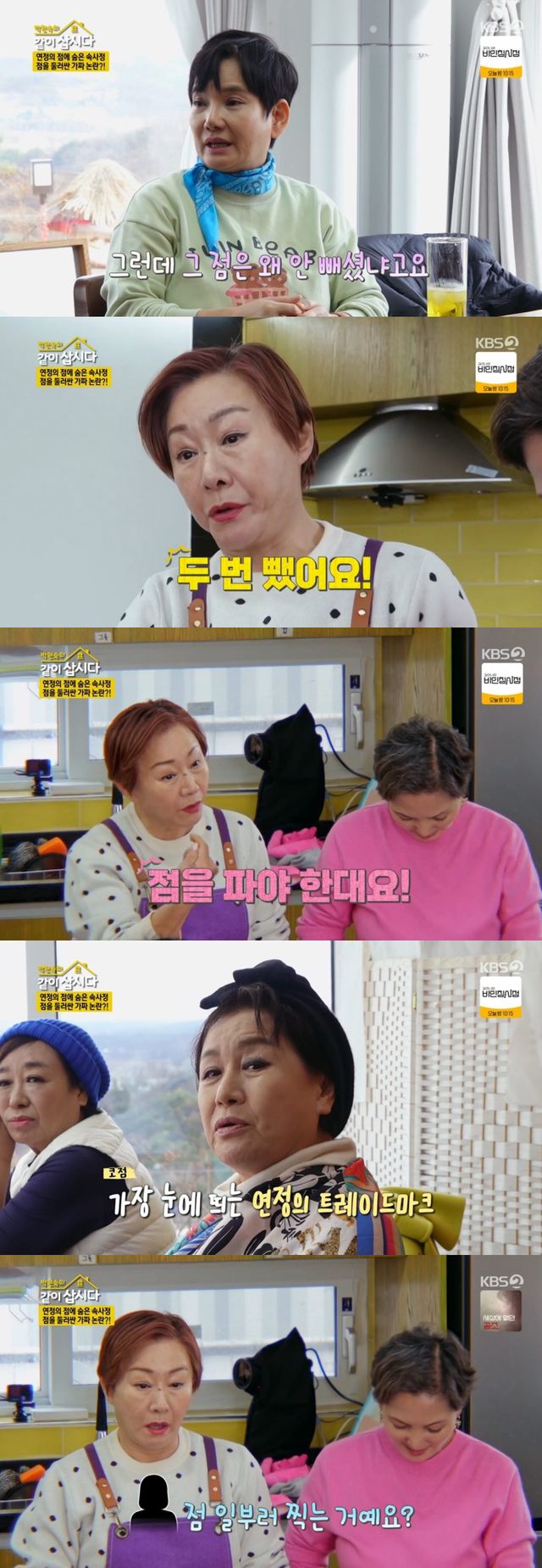 요리를 하던 중 안문숙은 배연정의 트레이드마크인 콧등의 점을 빼지 않은 이유를 궁금해했다.