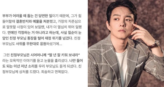 그러면서 "부부가 어려울 때 돕는 건 당연한 일이기 때문에 그가 힘들어할 때 결혼 반지와 예물을 처분했고, 가장의 자존심으로 말 못할 사정이 있어 보일 땐 제가 더 열심히 뛰어 일했다. 연예인 걱정하는 거 아니라고 하는데 사실 칠순이 눈 앞인 친정 부모님 통장을 털어 재정 위기를 넘겼다"고 밝혔습니다.