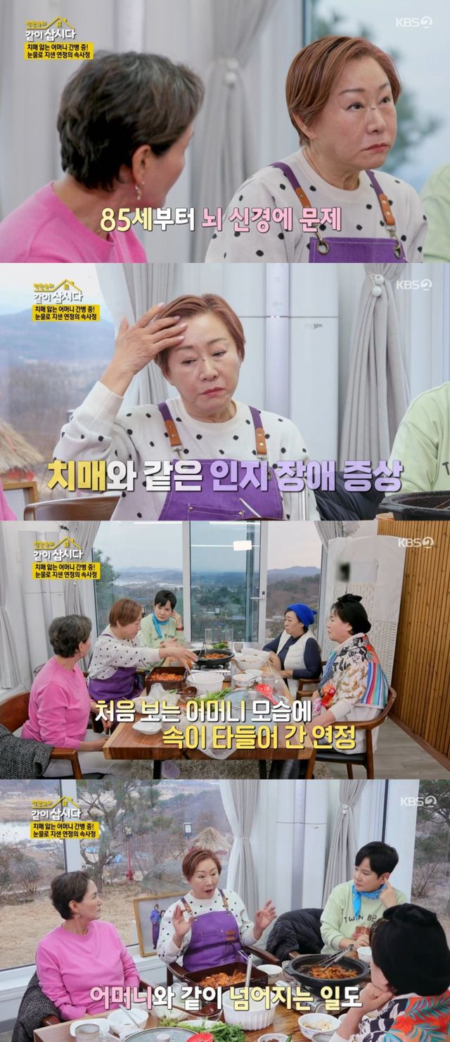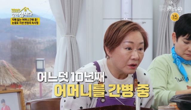 11일 방송된 KBS 2TV '박원숙의 같이 삽시다 시즌3'(이하 '같이삽시다')에는 배연정이 게스트로 출연해 어머니를 간병 중이라고 알렸다.