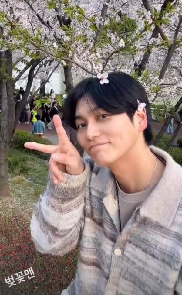 최성준은 지난 10일 자신의 인스타그램에 벚꽃이 핀 나무 위에 매달린 사진을 원숭이 이모티콘과 함께 올렸다. 또한 인스타그램 스토리에는 '벚꽃맨'이라는 글과 벚꽃을 배경으로 브이를 그려 보인 모습을 공유했다.