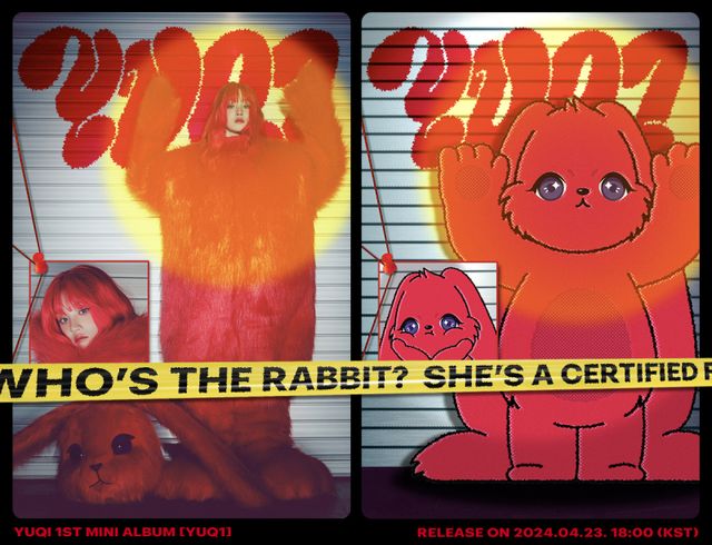 공개된 이미지 속 우기는 토끼 탈을 쓴 채 러블리하면서도 매혹적인 비주얼을 자랑하는가 하면, 폴리스 라인 테이프 위 ‘WHO'S THE RABBIT?’이라는 문구가 담겨 궁금증을 유발한다.