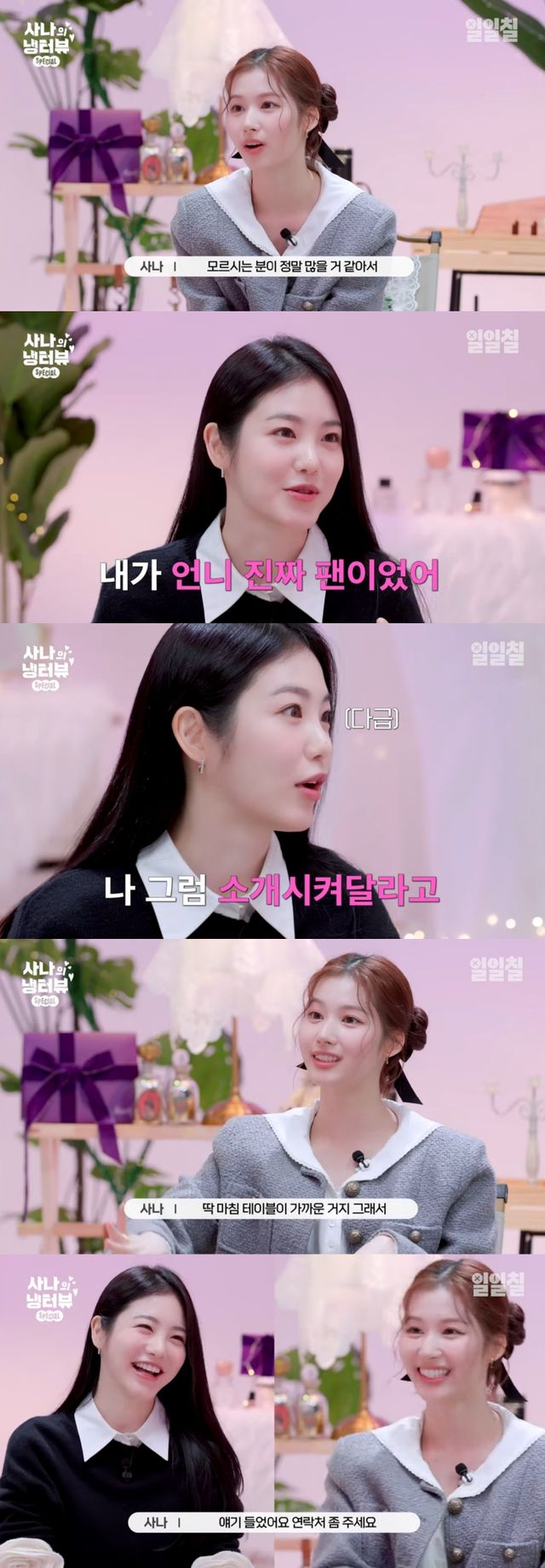 이에 신예은은 "내가 진짜 언니의 팬이었다. 언니를 진짜 좋아해서 '사나 언니 같은 매력을 내가 가져야겠다'고 생각했다"며 말을 시작했다.