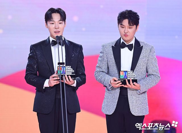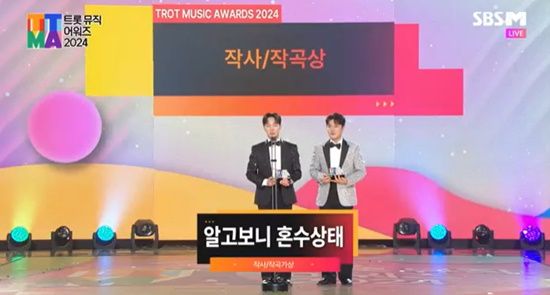 (엑스포츠뉴스 김예나 기자) 프로듀싱팀 알고보니혼수상태(김경범, 김지환)가 '트롯뮤직어워즈 2024' 작사/작곡가상의 영광을 차지했다.