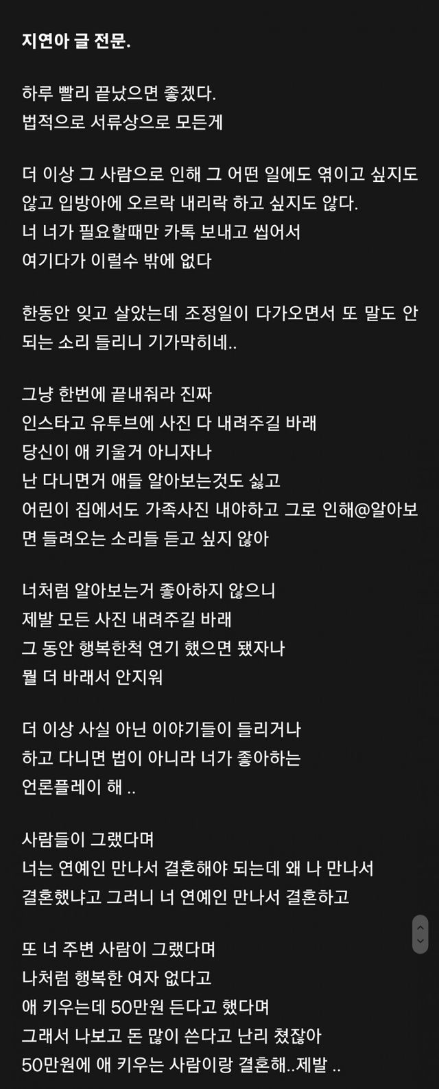 나머지 입장문 전문은 지연아 인스타나 기사에 있음
