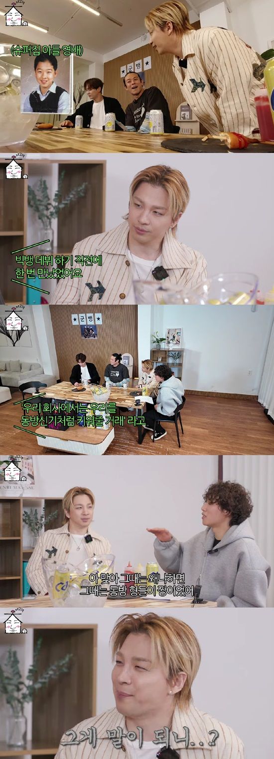 이어 대성은 "초등학교 때 말고 또 만난 적이 있냐"고 물었고 작가는 "초등학교 때 만나고 고등학교 때 빅뱅 데뷔 직전에 만났다"며 태양과의 과거를 회상, "저한테 '우리 회사에서는 우리를 동방신기처럼 키워줄 거래'라고 하더라"고 덧붙였다.