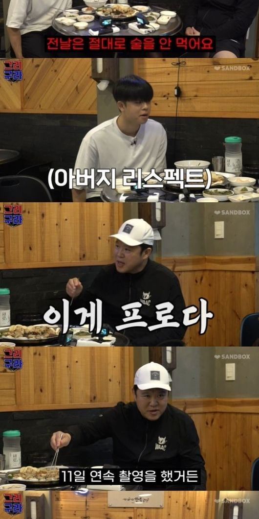 김구라는 “곱창은 소주랑 먹어야 맛있다”고 했고, 그리는 아빠에게 술을 배우지 않았다며 “내가 성인이 되고 아빠가 술을 안 먹기 시작했다. 술은 밖에서 배웠는데 아는 형한테 배웠다”고 밝혔다. 김구라는 “내가 옛날에는 소주를 3병씩 깠는데 (안 먹게 된 계기는) 집안의 우환 때문에 안 마시게 됐다”며 “말했다.