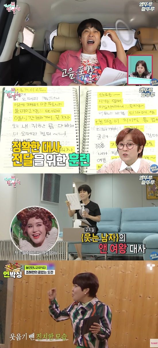 조혜련은 '웃는 남자'와 '팬텀' 오디션 서류전형에 합격했다고. 그는 차 안에서도 목을 풀고 가습기를 들고 다니며 컨디션 조절에 전념하며 의욕을 내비쳤다.
