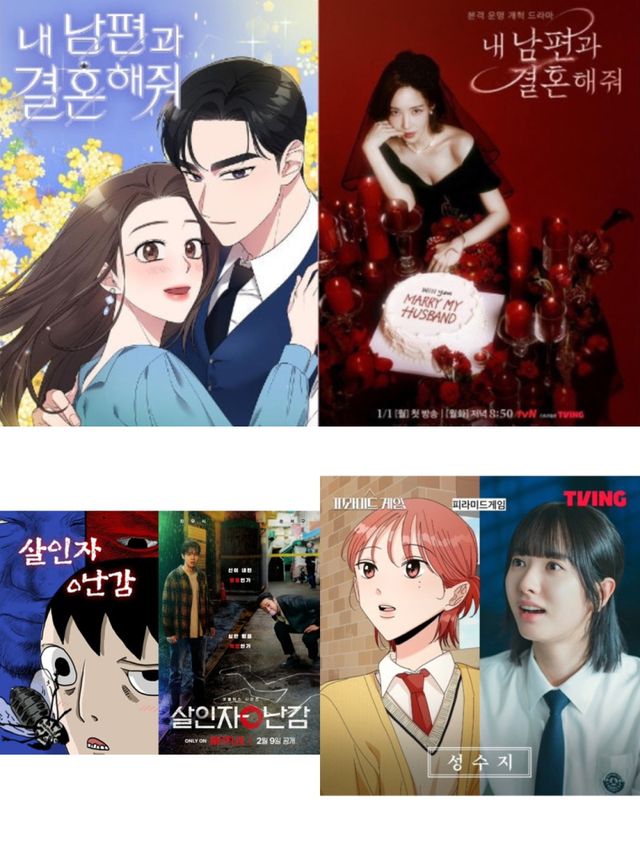 지난 1월 1일 방영을 시작한 tvN 드라마 ‘내 남편과 결혼해줘’(이하 ‘내남결’)에 이어, 2월에는 넷플릭스 ‘살인자ㅇ난감’(이하 ‘살장감’)과 티빙 ‘피라미드 게임’이 공개됐다. 각각 동명의 웹소설과 웹툰을 영상화한 작품들이다. 지난 2일 종영한 tvN 드라마 ‘웨딩 임파서블’과 지난달 15일 공개된 넷플릭스 ‘닭강정’도 각각 동명의 웹소설과 웹툰이 원작이다.