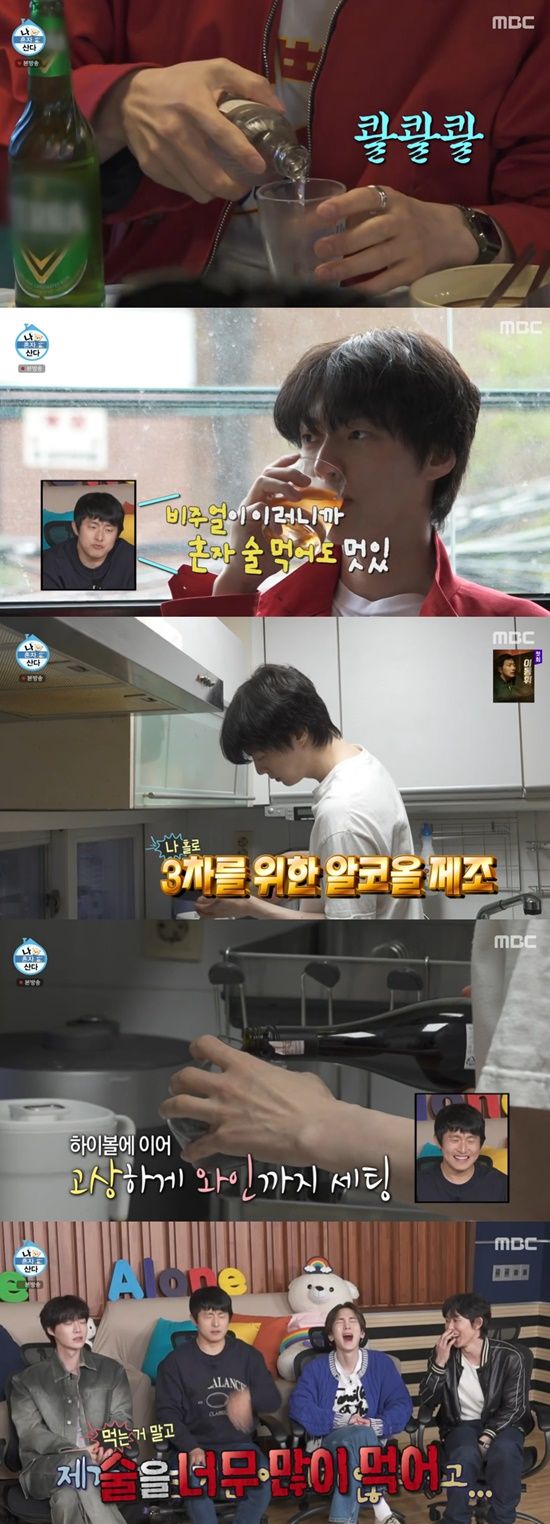 집에 돌아온 안재현은 복숭아맛 술에 소주, 토닉워터를 섞은 하이볼을 제조하는가 하면 와인까지 한 잔 더해 술자리를 이어갔다.