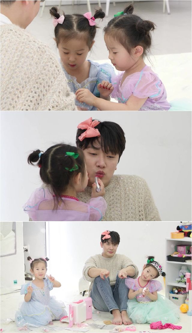 공개된 스틸 속 최민환은 무대 위 카리스마 넘치는 모습과는 다른 공주님 비주얼로 변신해 웃음을 자아낸다. 이는 최민환의 5살 쌍둥이 딸 아윤, 아린의 고사리손에서 탄생한 작품. 이날 아윤, 아린은 아빠를 위한 네일숍을 오픈해 공주 놀이에 푹 빠진다.