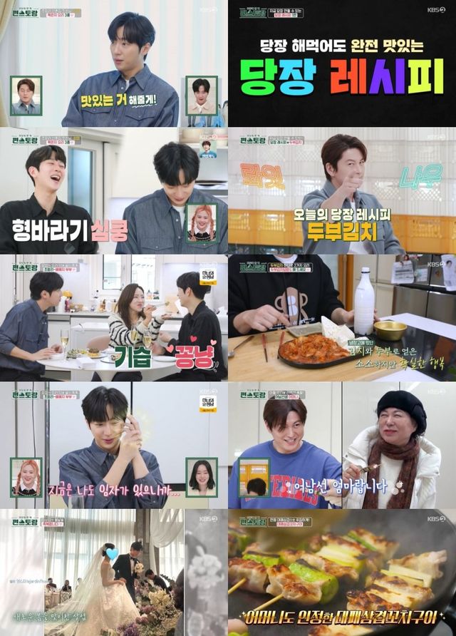 먼저 새신랑 이상엽은 절친한 동생이자 결혼 선배인 조항리 아나운서 집을 찾았다. 조항리 아나운서는 KBS 기상캐스터이자 아나운서인 배혜지와 결혼, 달콤한 신혼을 만끽 중이다. 이상엽은 신혼부부를 위해 묵은지 삼합(묵은지육회김밥, 묵은지깻잎, 깻잎막회)을 만들었고 조항리X배혜지 커플은 이상엽의 요리를 맛있게 먹으며 즐거워했다.