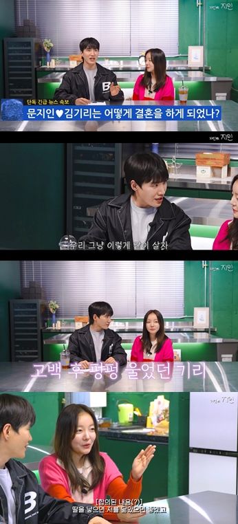 문지인은 "김기리 씨가 고백 후 펑펑 우셨다. 저는 고백 받았을 때 놀라고 소름돋았다. 친구 사이였다가 진전이 이렇게 돼버리니까 좋은 의미의 혼란스러움이었던 것 같다"라고 당시의 감정을 전했다.