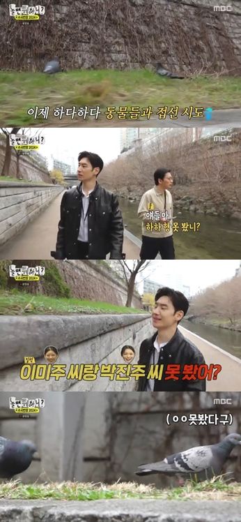 이에 이제훈은 비둘기에 "얘들아 잠깐만. 이미주 씨랑 박진주 씨 못 봤어?"라고 물으며 엉뚱함을 드러냈다.