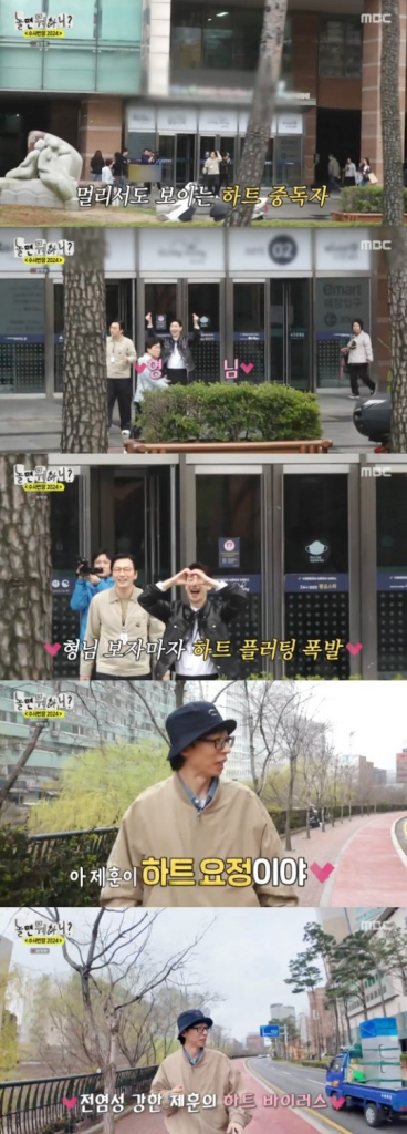 자신에게 하트를 날리는 유재석을 발견한 이제훈은 손가락 하트부터 큰 하트까지 그리며 유재석에게 애교를 보였다. 이를 본 유재석은 "제훈이 하트 요정이야, 나도 제훈이 따라 하트하게 되네"라며 수줍어 했다.
