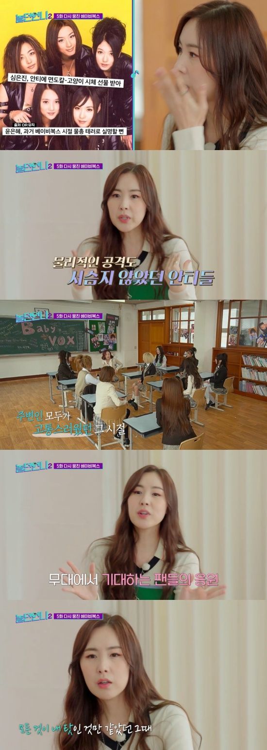 이와 함께 "내가 아닌 (윤)은혜가 물총에 맞아서 눈이 잘못된 적이 있었고, 계란을 던졌는데 다른 멤버가 맞기도 했다"면서 "컴백을 하면 환호나 박수가 나와야 하는데, '꺼져라' 하는 얘기만 나오게 되어서 우리 활동에 너무 큰 피해를 주게 되니까 너무 힘들었다"고 덧붙였다.