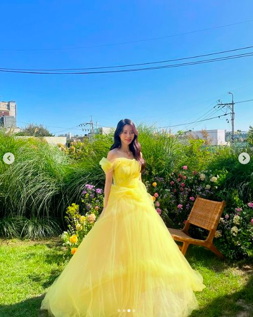 공개된 사진에는 화려한 오프숄더 드레스를 입은 임지연의 모습이 담겼다. 디즈니 공주같은 자태가 눈길을 끈다.
