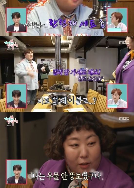 여러 종류의 고기를 먹은 뒤 2차를 가자던 한현재는 바로 옆 테이블로 이동했다. 한현재의 오랜 맛집답게 포차 안주도 판매해 2차의 느낌을 낼 수 있다고. 신기루는 샵뚱의 코스에 대만족하며 "난 우물 안 뚱보였다"고 말해 웃음을 자아냈다.