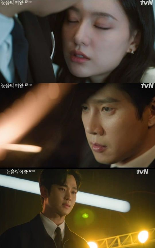 지난 13일 방송된 tvN 토일드라마 ‘눈물의 여왕’ 11회에서는 홍해인(김지원)이 뇌종양 증세 악화로 윤은성(박성훈)을 백현우로 오해해 따라가는 모습이 그려졌다. 이에 백현우가 이를 뒤쫓아가는 장면이 이어졌다.