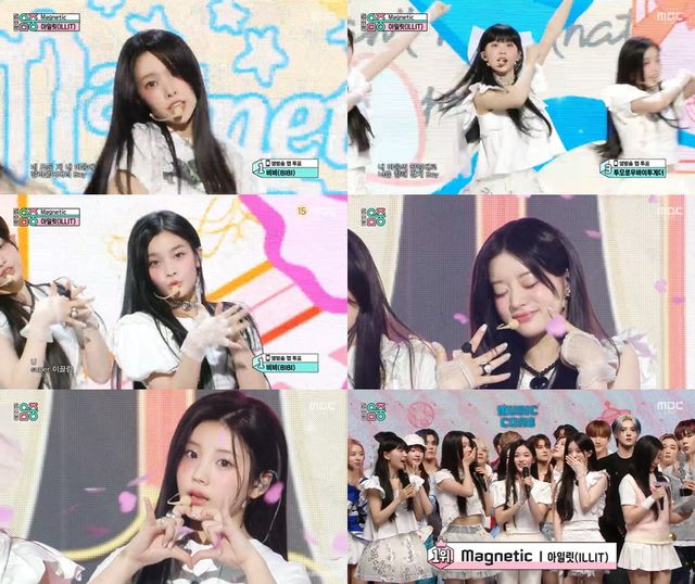 아일릿(윤아, 민주, 모카, 원희, 이로하)은 지난 13일 방송된 MBC '쇼! 음악중심'에서 미니 1집 'SUPER REAL ME'의 타이틀곡 '마그네틱(Magnetic)'으로 1위를 차지했다.