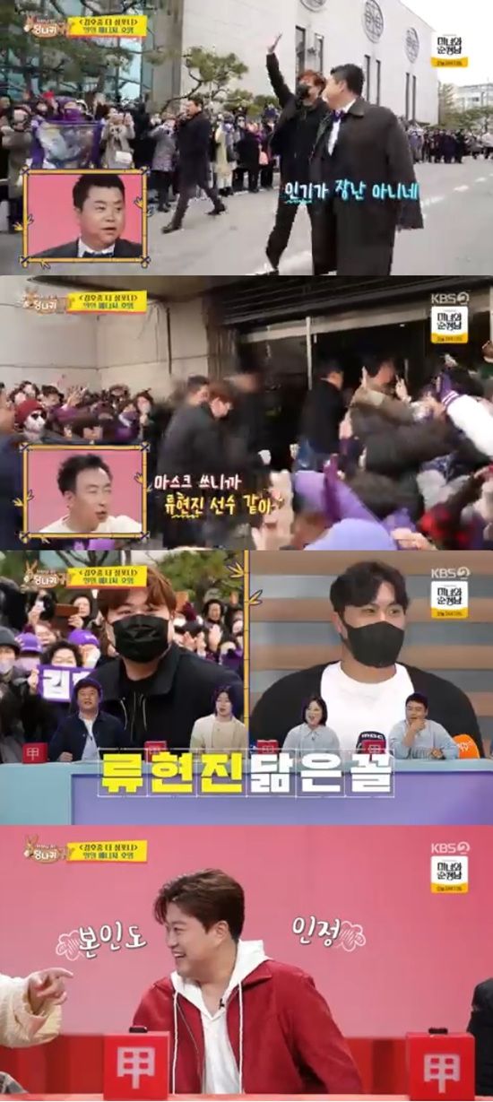 14일 방송된 KBS 2TV '사장님 귀는 당나귀 귀'에서는 김호중이 류현진 닮은꼴 비주얼을 드러내는 모습이 전파를 탔다.