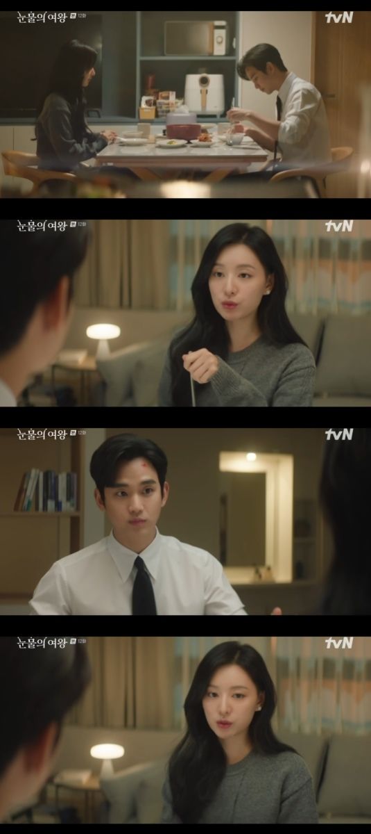 14일 방송된 tvN 토일드라마 '눈물의 여왕'에서는 백현우(김수현 분)와 홍해인(김지원)이 알콩달콩 행복한 한 때를 보내는 모습이 담겼다.