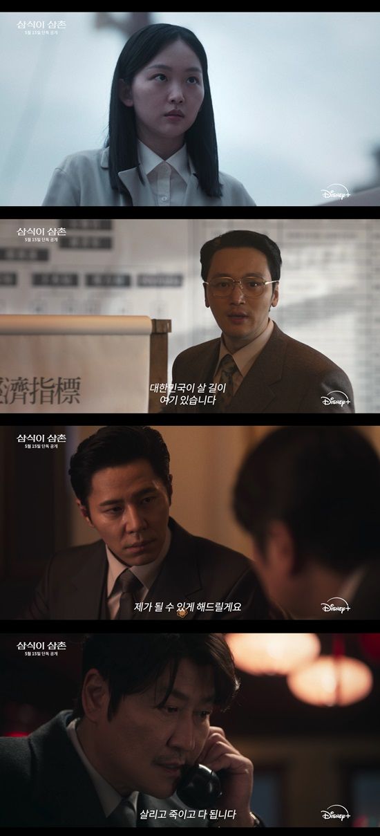 디즈니+ 시리즈 '삼식이 삼촌'은 전쟁 중에도 하루 세끼를 반드시 먹인다는 삼식이 삼촌(송강호 분)과 모두가 잘 먹고 잘 사는 나라를 만들고자 했던 엘리트 청년 김산(변요한)이 혼돈의 시대 속 함께 꿈을 이루고자 하는 뜨거운 이야기를 그린다.