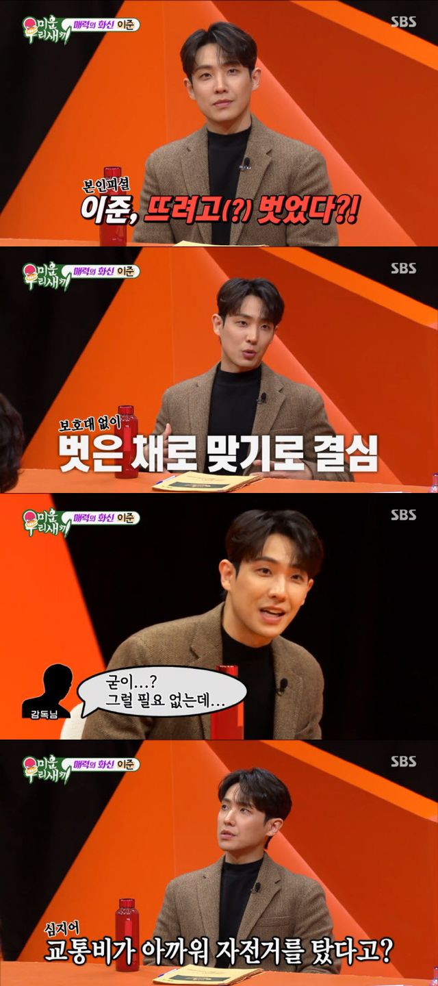 속옷을 10년 입는 것은 물론 한 달 카드 값이 겨우 70만 원이라는 이준은 “연습생 시절 지하철 비도 아깝다는 생각이 들어서 자전거로 송파에서 압구정을 매일 왕복했다”라고 김종국 버금가는 ‘짠돌이’ 면모를 자랑했다. 이어 이준이 “집이 꽤 넓은데 수도세가 한 달 3000원이 나왔다. 헬스장에서 씻는다”라고 말하자 서장훈은 “남의 돈으로”이라고 지적해 폭소를 자아냈다.