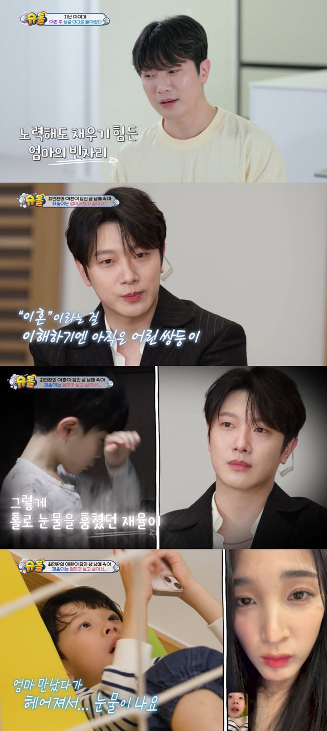 이날 아들 재율은 엄마와의 추억이 담긴 사진을 보며 눈물을 훔쳤고 최민환은 이를 보며 몰랐다며 속상해했다. 재율은 엄마 율희와 영상 통화하며 “엄마 꿈꾸고 눈 뜨면 헤어져야 해서 눈물이 난다”고 말해 시청자들에게 안타까움을 자아냈다. 이에 최민환은 “아이들이 엄마랑 이제 같이 안 사는 거냐고 물어볼 때 마음이 아프다”고 밝혔다. “어른들이 결정해서 생긴 일인데 아이들이 속상해하는게 안타깝다”며 “자는 모습을 볼 때 미안해서 눈물이 난다”고 말하며 미안한 감정을 표현했다.