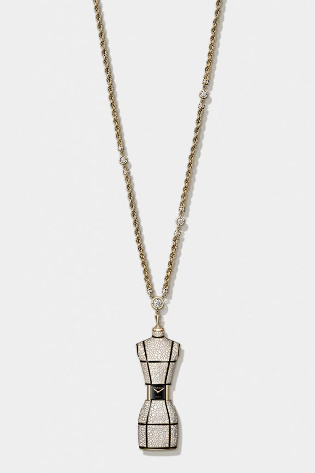 이름처럼 마네킹 형태의 ‘버스트 롱 네크리스 꾸뛰르(Bust Long Necklace Couture)’는 스노우 세팅 기법을 적용한 다이아몬드와 18K 옐로 골드로 만든 마네킹을 롱 네크리스 형태로 제작했습니다. 이에 더해 마네킹의 허리 부분에 블랙 래커 다이얼을 숨겨 네크리스에 워치를 결합해 액세서리 그 이상의 가치를 갖춘 제품이죠. 버스트 롱 네크리스 꾸뛰르는 전 세계 단 20개의 한정판으로 선보입니다.