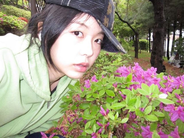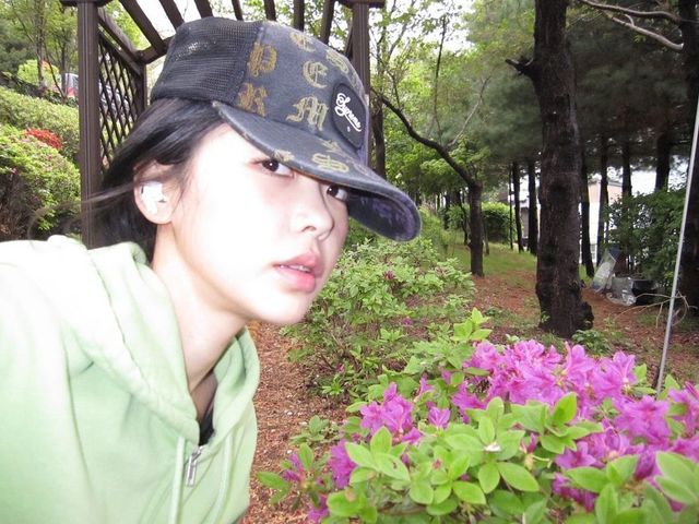 공개된 사진 속 미노이는 꽃 옆에서 포즈를 취하며 카메라를 응시하고 있다.