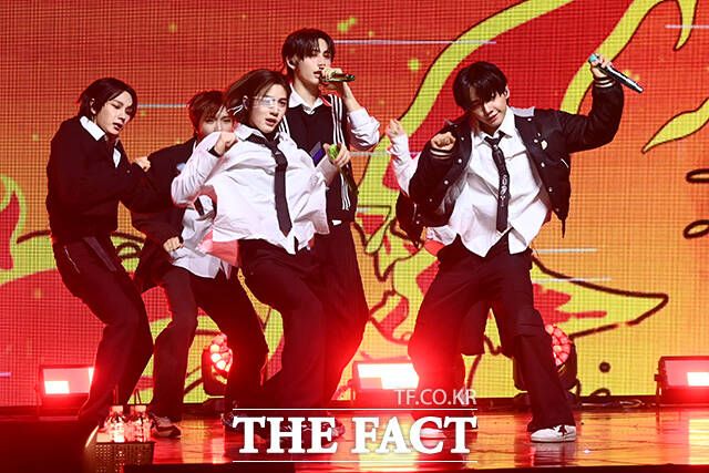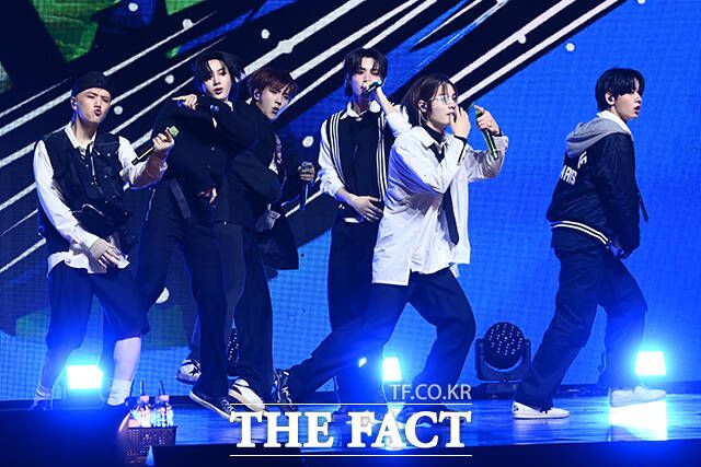그룹 보이넥스트도어가 15일 오후 서울 광진구 예스24 라이브홀에서 열린 미니 2집 '하우(HOW)' 발매 기념 쇼케이스에서 타이틀곡 'Earth, Wind & Fir' 무대를 펼치고 있다. /장윤석 기자