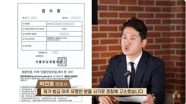 영상 속 박건호 변호사는 '하트시그널' 출연자를 상대로 오늘 고소장을 접수했다며, 놀랍게도 '사기 사건'이라고 밝혔다.