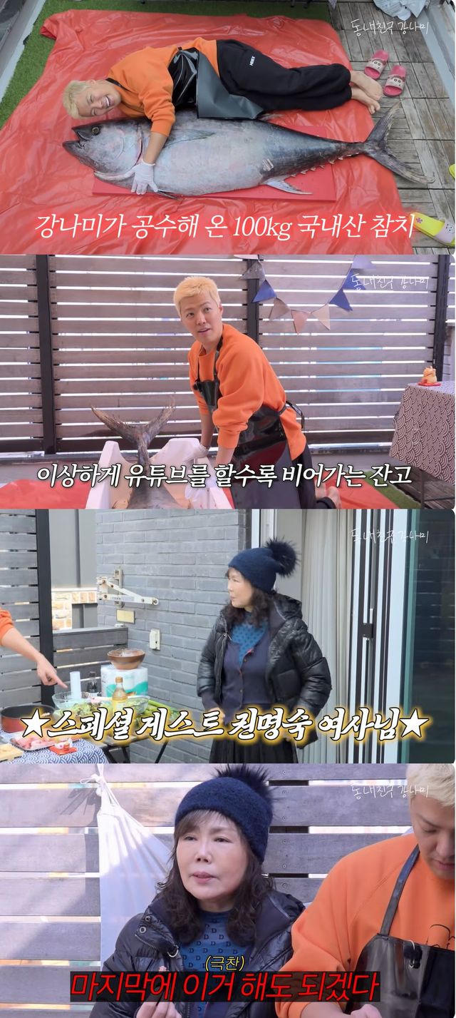 15일 유튜브 채널 '동네친구 강나미 [Kangnami]'에는 '엄마랑 상화 몰래 집에서 참치 100kg 먹었습니다'이라는 제목의 영상이 업로드됐다.