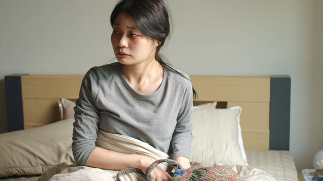기은은 엄마 몰래 또 약을 먹고, 노란 스웨터를 입은 후 거울을 들여다본다.