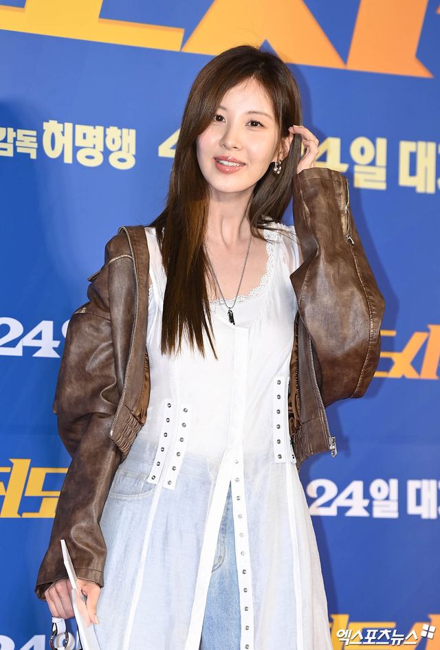 이날 VIP 시사회에 참석한 유라, 서현이 포토타임을 갖고 있다.