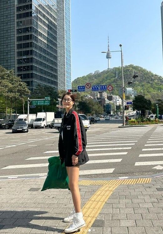 공개된 사진에는 핫팬츠에 오버사이즈 상의를 입고 하의실종 패션을 뽐내는 한지혜의 모습이 담겼다. 늘씬한 각선미가 눈길을 끈다.