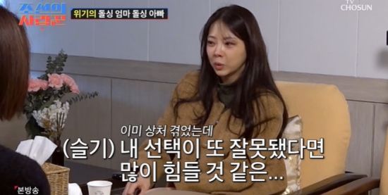 김슬기는 "이번에도 내 선택이 또 잘못됐다고 생각하면 되게 많이 힘들 거 같다. 괜찮아진 줄 알았다. 근데 안 괜찮은 거 같다. 가정을 다시 꾸리려고 하다 보니까 그런 게 올라오는 거 같다. 예전의 상황들이라든지. 이런 불화가 일어났을 때의 스트레스. 그때와 지금 정반대의 행동을 취하고 있는데 그때는 '이렇게 했기 때문에 이혼했다'가 있으니까 반대로 행동을 하고 있는데 반대로 해도 이 사람이랑 안 좋으니까 어떻게 해야 될지 모르겠다"라며 고백했다.